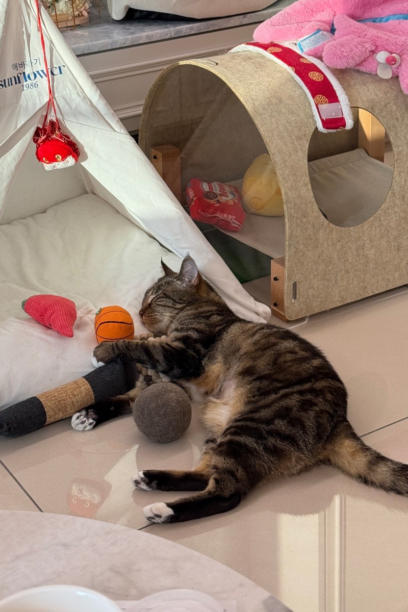 Kiki在三歲多時,出現在我們美國的家⾨⼝。那時她還是⼀隻在街頭徘徊的⼩貓。我們在⼀個下雪天把她接回家,從此她成為這個家的「⽑老闆」,決定我們的⾏程與⽣活節奏,也陪伴我們⼀路回到台灣,走過⼗多年時光。